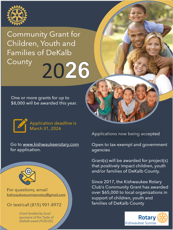 Club members have many opportunities for humanitarian service, both locally and internationally. Service programs address such concerns as health care, hunger, poverty, illiteracy, and the environment. Rotarians experience the fulfillment that comes from giving back to the community. At Kishwaukee Sunrise, we endeavor to provide a $10,000 community grant EVERY YEAR. This money goes directly towards helping children, youth and families in DeKalb County. Internationally, we support the Jane Adeny Memorial School for girls in Kenya. We raised and donate funds for this because we know that educating young women is one way to bring prosperity and advancement to any community, region and country (and the world!).